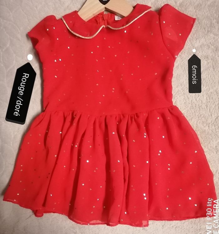Robe kimadi 6mois Manche courte, petit coll Fermeture éclair derrière Doublure. Rouge petites étoiles doré 100%polyester Neuf sans étiquettes 7€