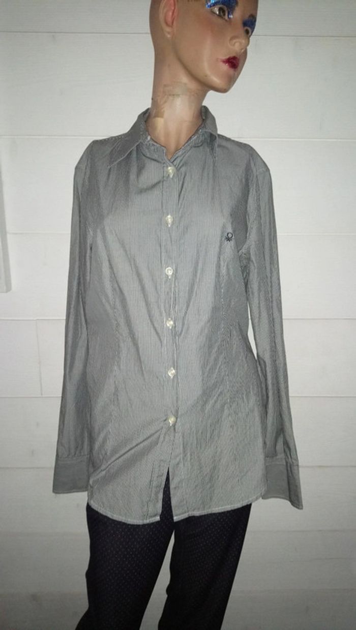 Jamais portée. Elle est en 100% coton. Fines rayures grises ideale pour porter avec un tailleur classique. N'hésitez pas à me poser vos questions et à fouiller dans mon dressing pour acheter en lot et profiter des réductions. #louloulipop36 #louloulipop38 #louloulipophauts