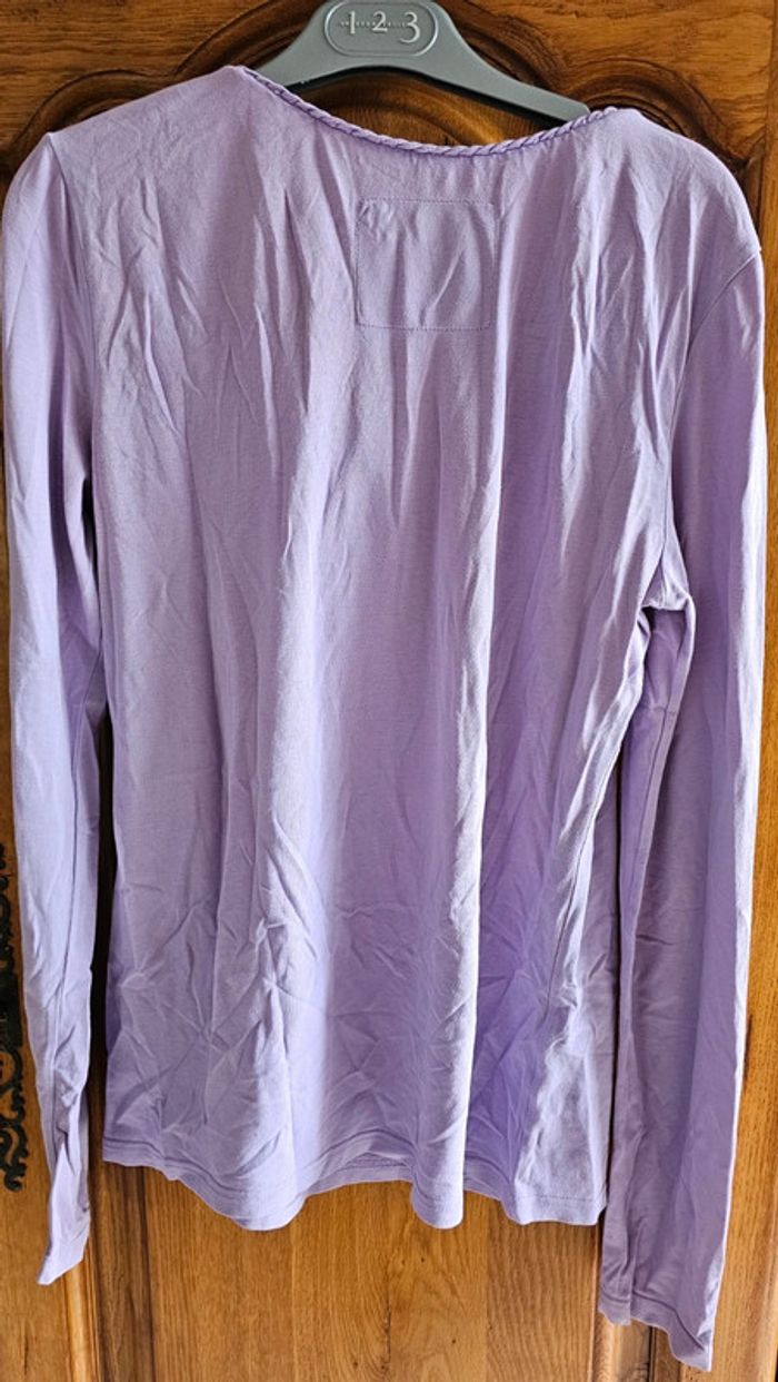 Tshirt manches longues Esprit taille M (40) Couleur parme, jolie Encolure avec cordelette Quelques marques d'usures notamment petites tâches voir photo n°3