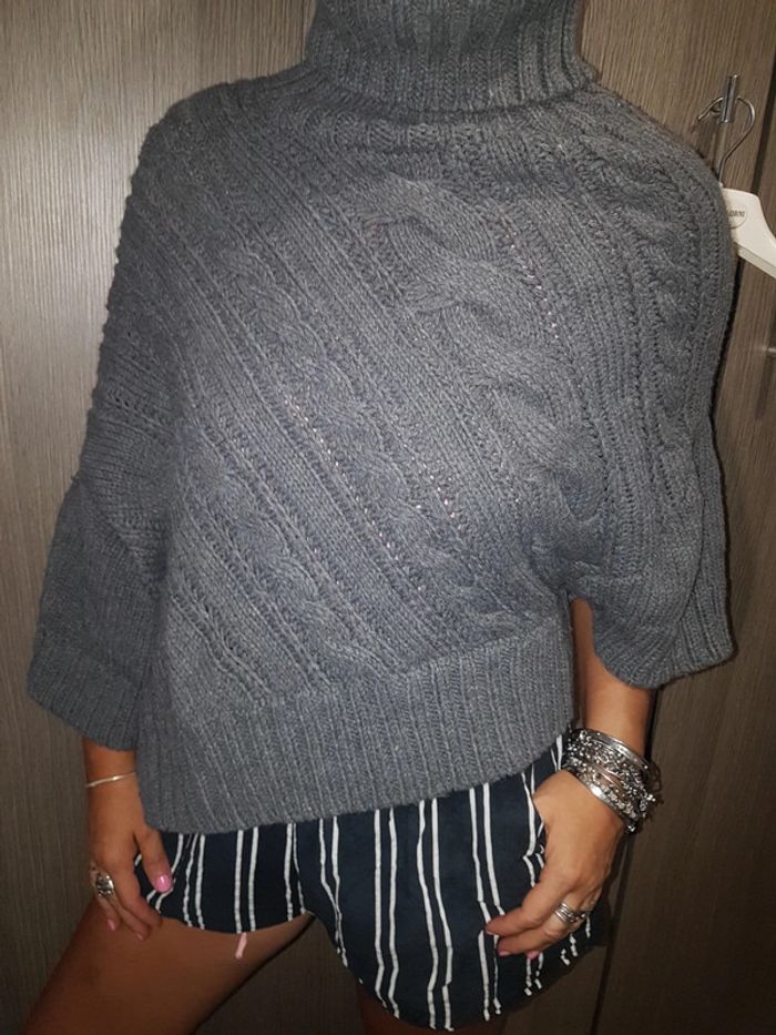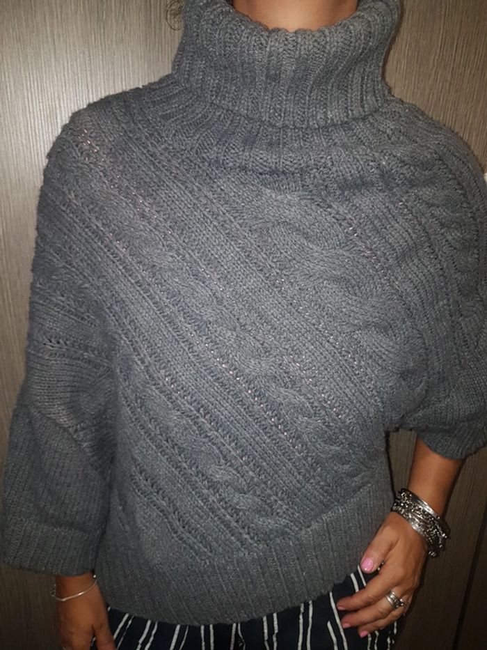 Pull chale col roulé maille tressée gris S/M - photo numéro 1