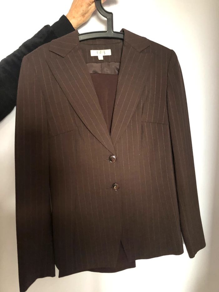 très belle veste à fines rayures taille 40 et le pantalon taille 38 ensemble de la marque 1-2-3 porté plusieurs fois , la veste à des fines rayures et le pantalon est uni