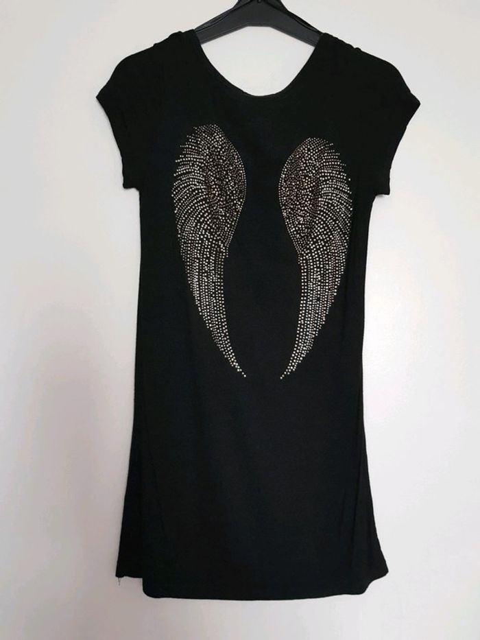 Tunique de couleur noir avec strass dans le dos représentant des ailes très peu portée