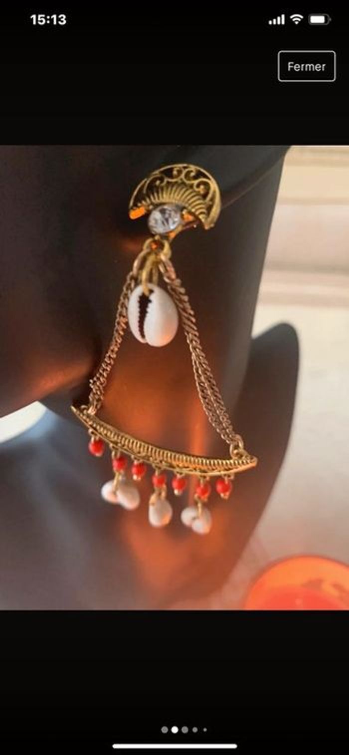 Boucles d'oreilles perles et  coquillages  style ethnique - photo numéro 4