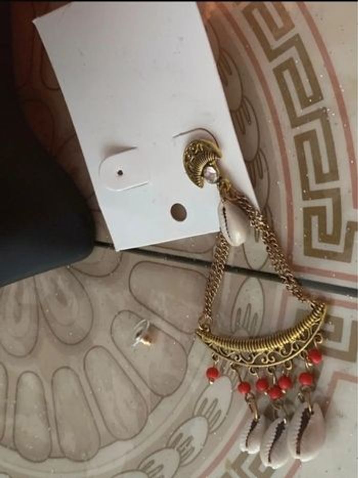 Boucles d'oreilles perles et  coquillages  style ethnique - photo numéro 2