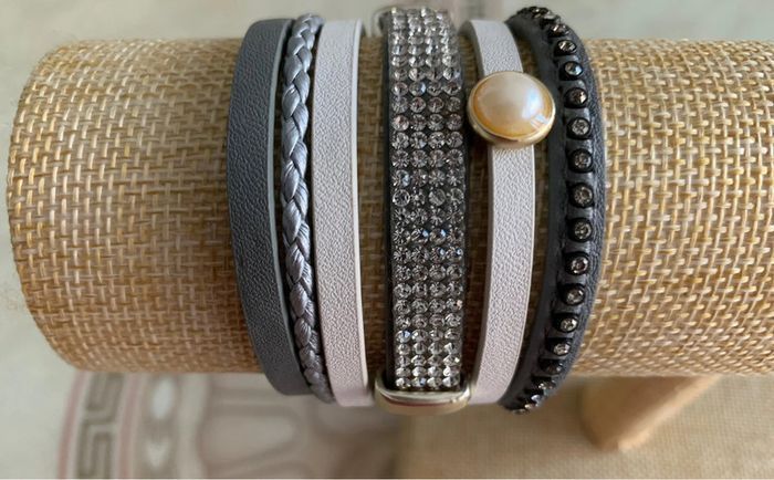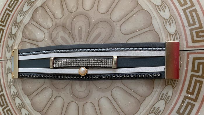 Simili cuir et strass bracelet manchette avec fermeture aimantés élégant jamais mis #salsabile1974BraceletsSimiliCuirStrass