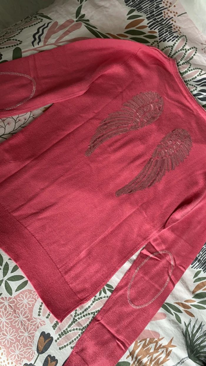 Joli pull fin rose dessin ailes d’ange dans le dos en sequins Très bon état