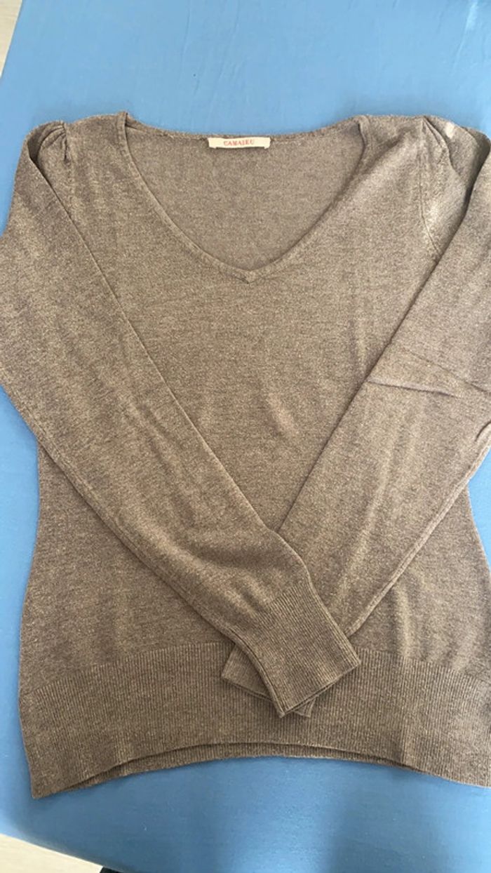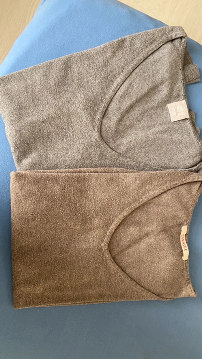 Lot de 2 pulls légers - 1 gris - 1 marron beige Portés quelques fois bon état général Pas de trou Pas de tache