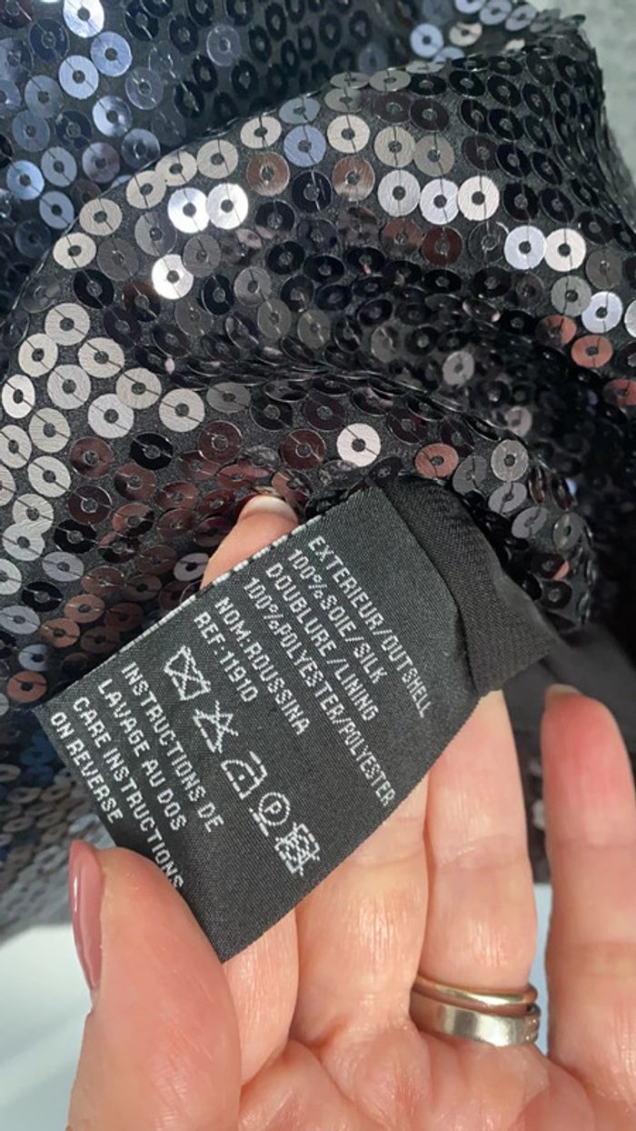 Très jolie robe 100% soie manges 3/4 Bas de l rue en sequin Portée 1 fois