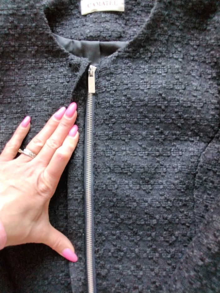 Veste Camaïeu noire à fermeture à glissière, ainsi que 2 fermetures aux poignets, le tout en très bon état de fonctionnement. Maison non-fumeur #elodie_geo_vêtements_femme_taille36 B2