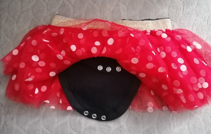 Jupe tulles filles 9/12mois ( made in China) Ceinture collée élastique doré Fermeture bodies noir (voir photo) Rouge /blanc Porté une fois 5€