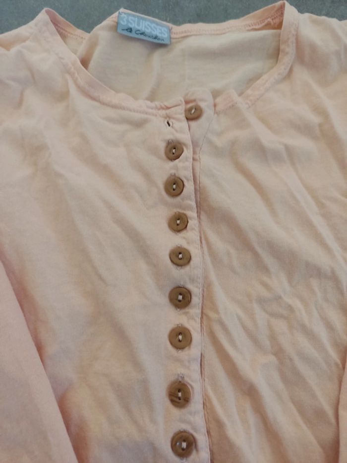 Tee shirt manches longues 3 Suisse, saumon, taille 36 100 % coton