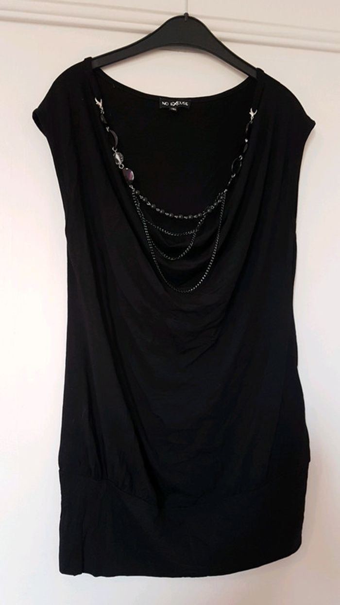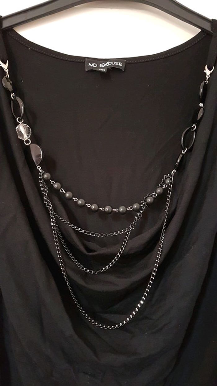 Joli haut noir col bijoux de la marque No Excuse en taille 42/44. Neuf. N'hésitez pas à me contacter si vous avez des questions. #caroleh47femme42 #hautcolbijoux #hautnoir #noexcuse #taille42 #taille44