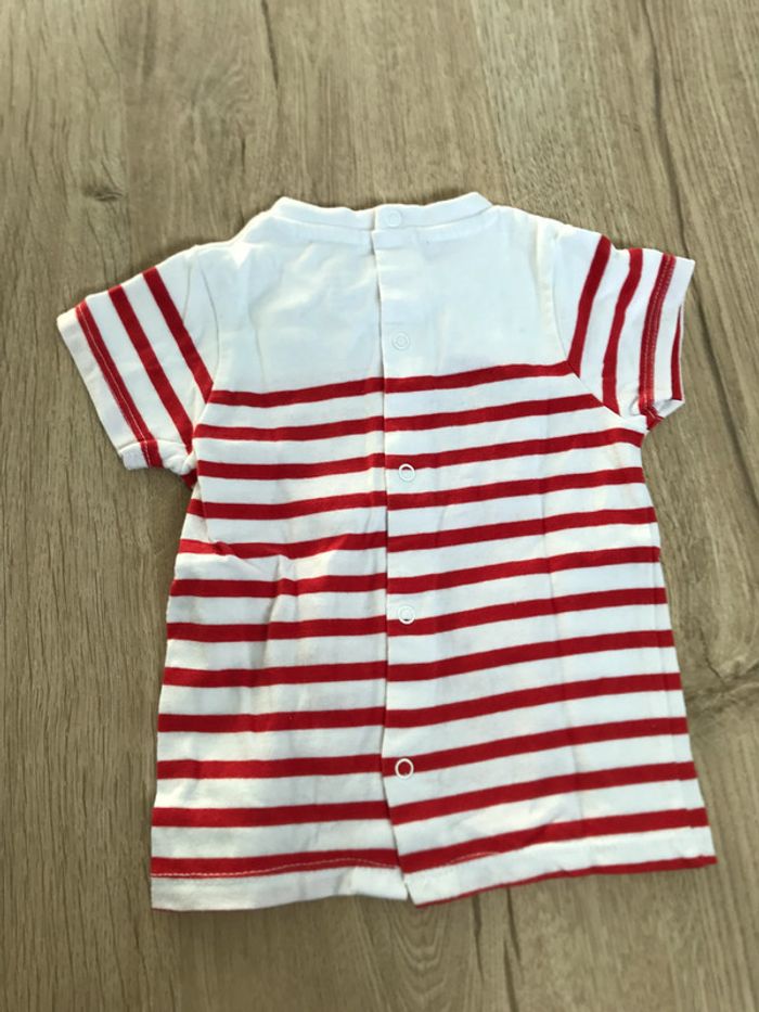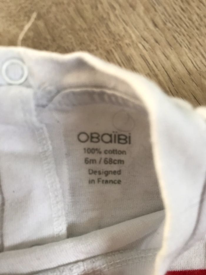 Tee-shirt Obaïbi, taille 6 mois Dans le lien ci-dessous, autres vêtements de taille 6 mois : #6mois_Keluoai #teeshirt #rayures #rouge #blanc #obaïbi #6mois