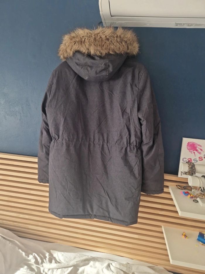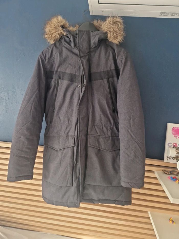 Doudoune jack&Jones en excellent état. Chaude.peu être resserré à la taille avec élastiques à l intérieur. 4 poches extérieurs.fourure amovible.