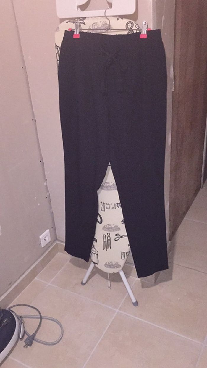 pantalon noir avec noeud à la taille .jamais portée .taille 40 .élastique à la taille