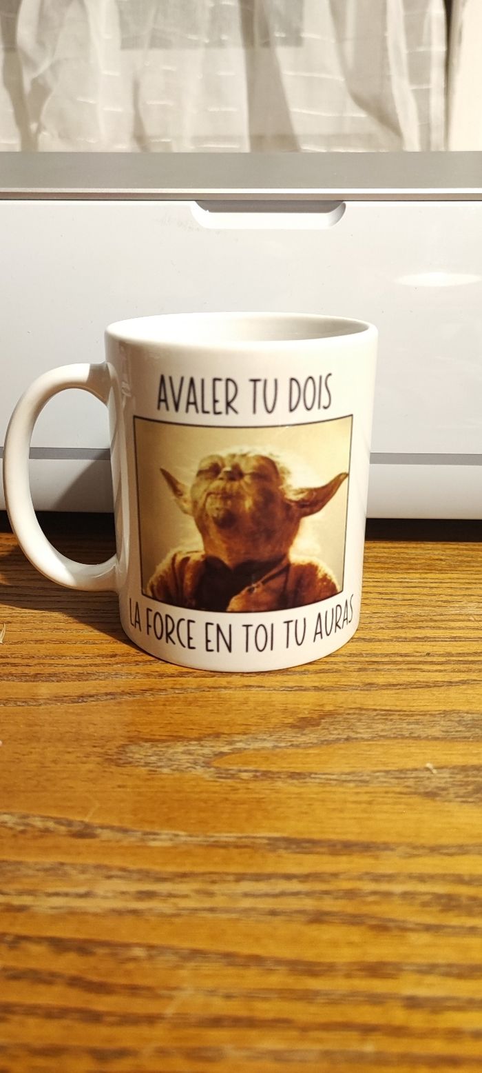 Mug Star Wars " avaler tu dois la force en toi tu auras " Possibilité de rajouter un prénom au dos du mug
