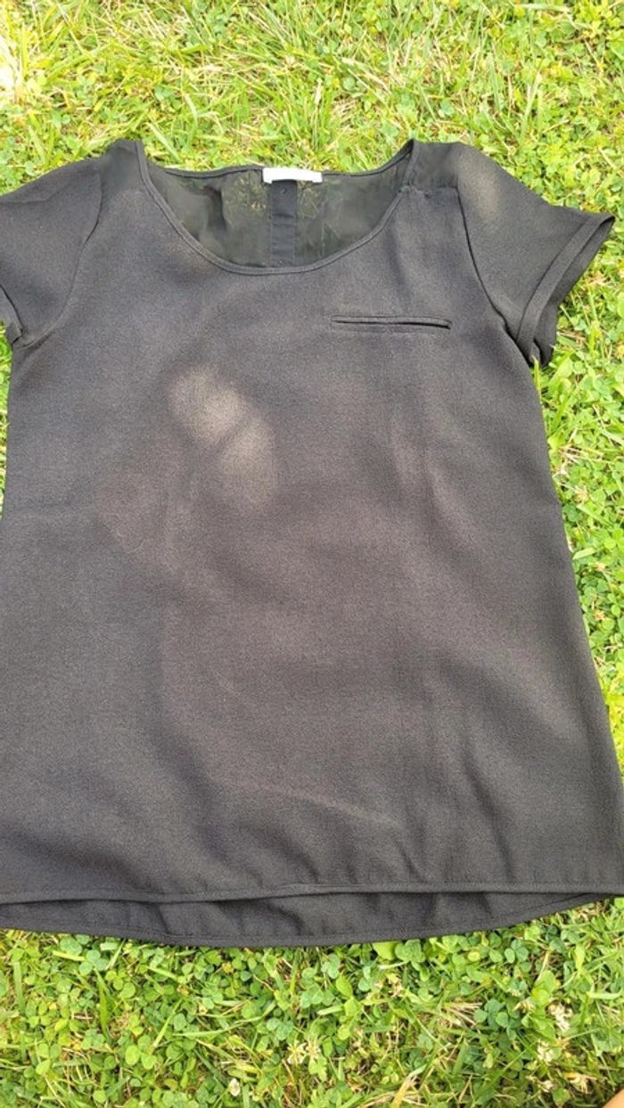 Haut habillé noir cache cache 36. J'ai dû le porter 1 fois. Bien noir contrairement à ce que laisse paraître les photos. #marielubin28_femme36 envoi en petit format pour tout achat ✅️