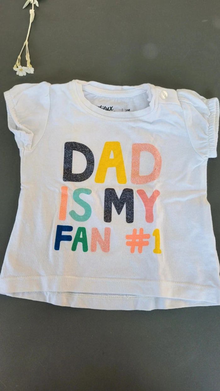 Tee-shirt MC blanc "dad is my fan #1" gemo 3mois 1ere main peu porté. #marielubin28_3moisF envoi en petit format pour tout achat ✅️