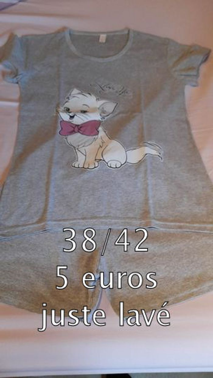 Nouveau pyjama short gris indiqué XXL mais je dirais 38 à 42 nouveau sans étiquette (juste lavé et repassé)