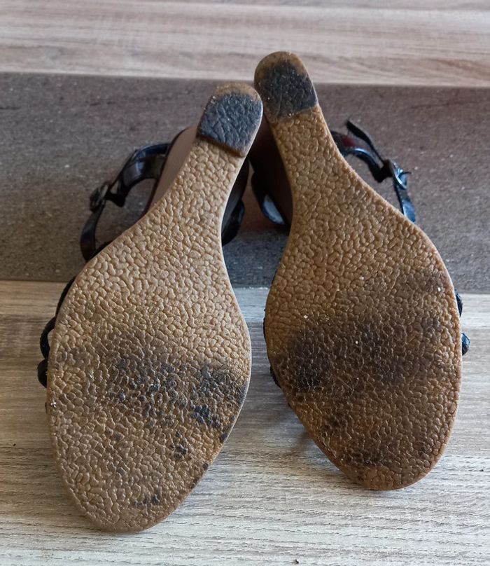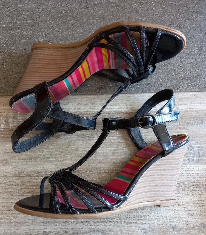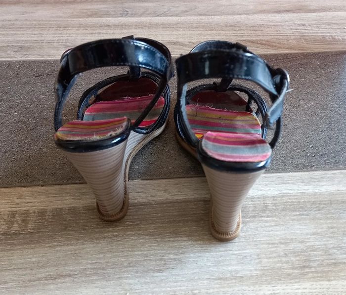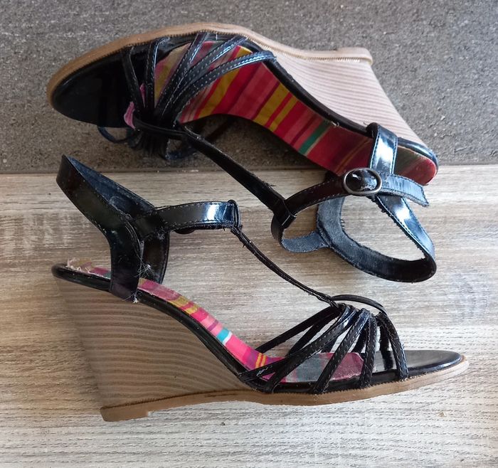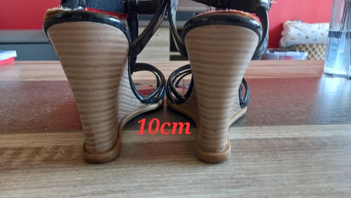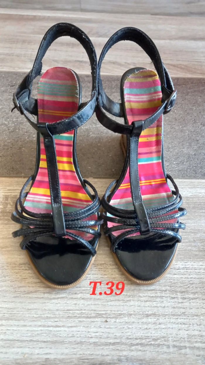 Vends chaussure compensée Taille 39 Hauteur du talon 10cm Un peu abîmé voir photo Bon état