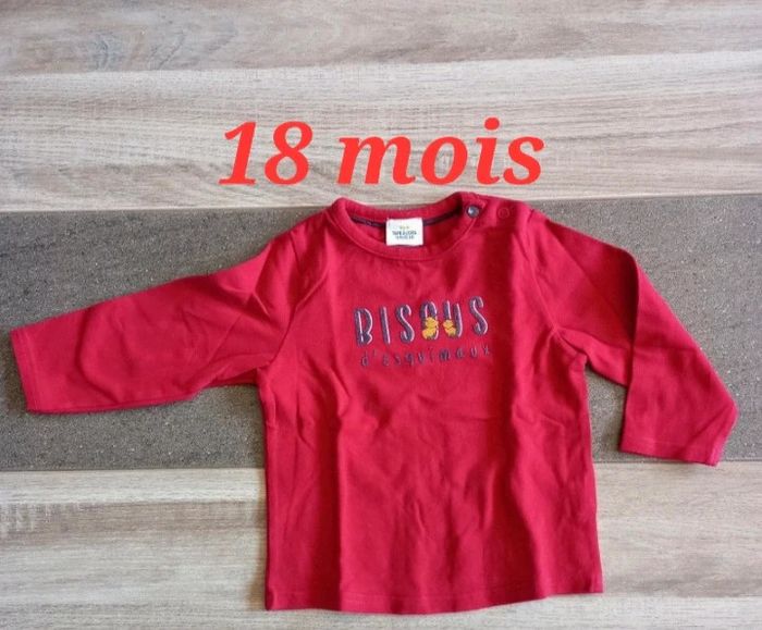 Vends t shirt manches longues 2 pressions sur le côté Taille 18 mois Très bon état