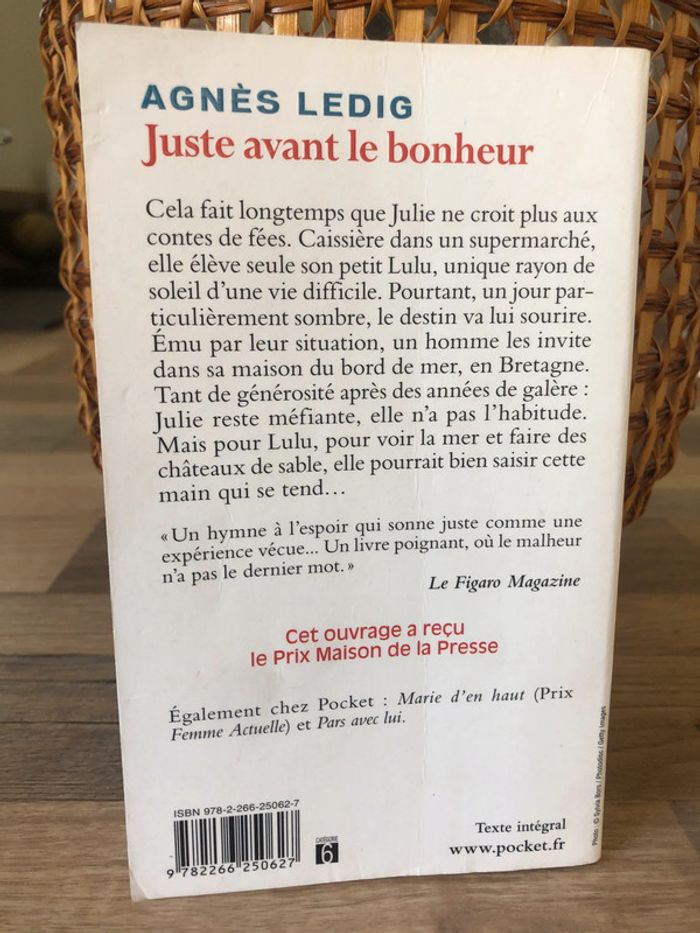 Livre de poche Agnes Ledig "Juste avant le bonheur"