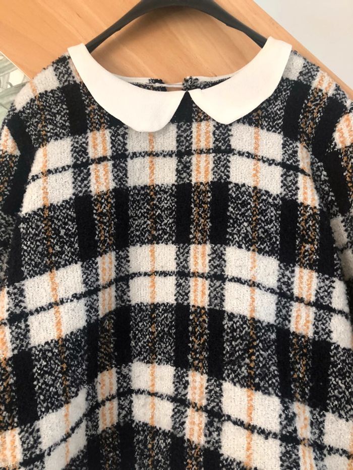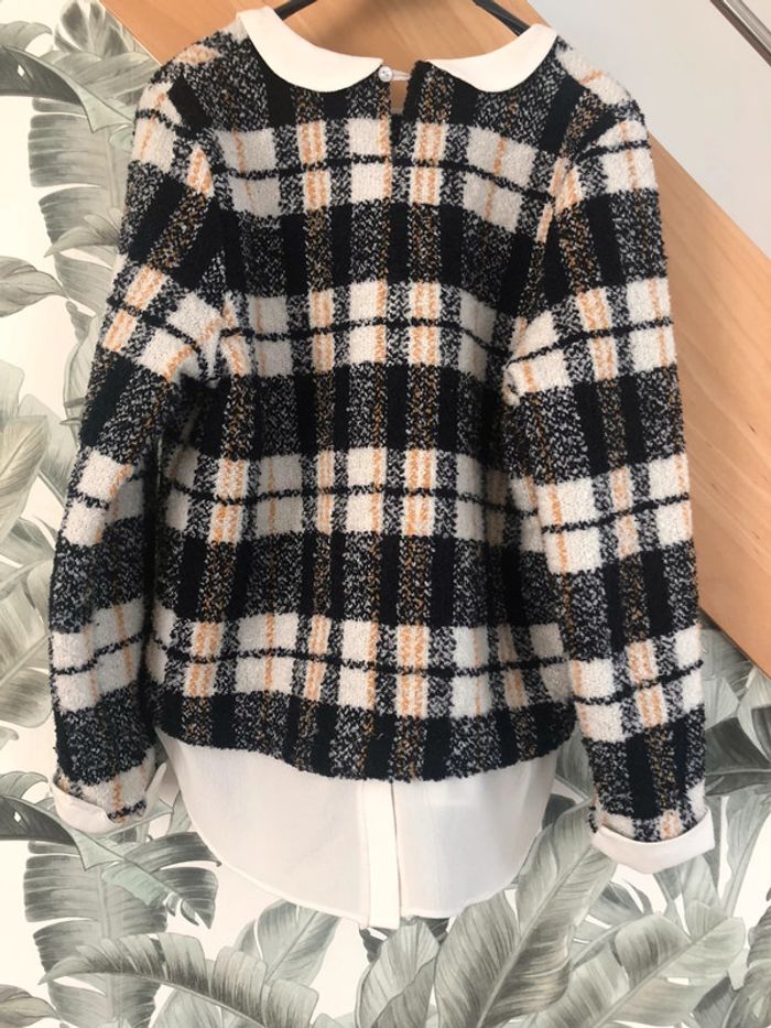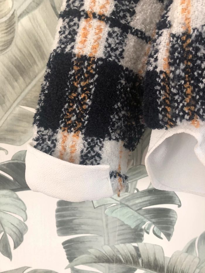 ✨Joli haut acheté dans une boutique indépendante (aucune étiquette sur le vêtement) 🏷très bon état porté moins de 5 fois, les points noirs à peine visibles sur le bas du haut sont d’origine 🏷aspect tweed très chaud à carreaux noirs jaunes et blancs, 🏷Col, bout des manches et bas du haut en matière légère synthétique ✂️Pas d’étiquette de taille: mais correspond à mes yeux à un 38 , merci de bien vouloir vérifier votre taille avec les mesures (pas de retour pour erreur de taille) -aisselles à aisselles :46 cm -des épaules au bas 60 cm -des aisselles au bas 36 cm #haut #carreaux #tweed #femme #vetement