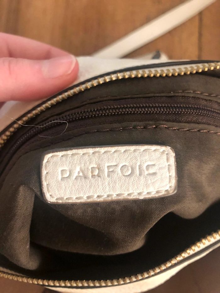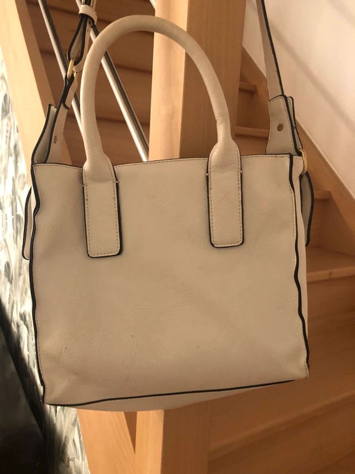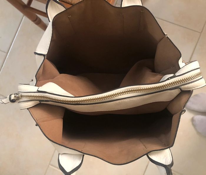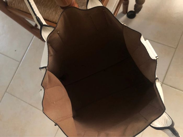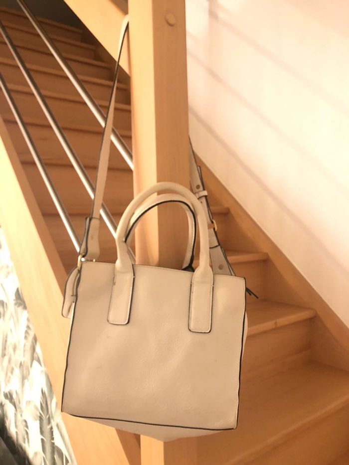 ✨Sac à main de la marque parfois, blanc à bords noirs et intérieur camel 🏷en état satisfaisant: a déjà été pas mal porté, quelques traces visibles sur les photos, reste néanmoins largement utilisable ✂️bandoulière ajustable et amovible, pochette du milieu du sac amovible pour ne former qu’un seul compartiment, très pratique #sac #sacamain #parfois #femme #accessoires