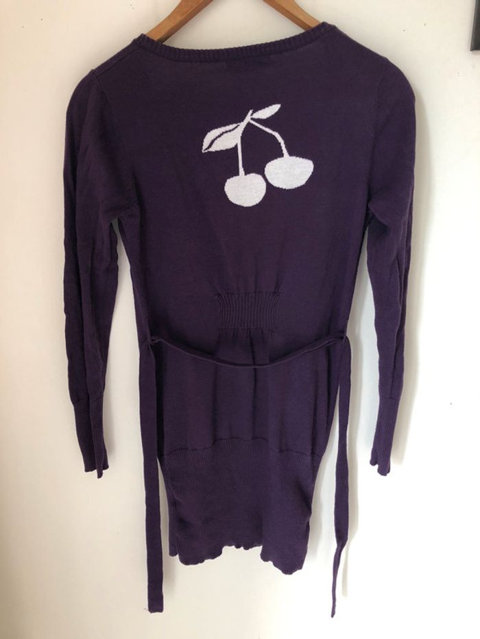 ✨Joli gilet de la marque Tricot Land en bon état (déjà porté mais aucuns défauts) 🏷100% coton (aspect maille très fine) ✂️Taille S/M mais correspondant plus à un S si porté fermé 🛍de couleur violette avec des cerises blanches dans le dos 🛍resserré aux poignets, en bas du gilet et dans le dos ✨vendu avec sa ceinture #gilet #tricot #haut #femme #giletviolet #giletencoton #giletlong #cerises #cerise #violet #mauve