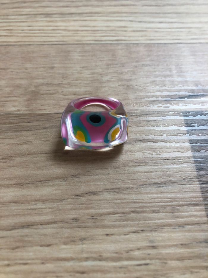 ✨Neuve bague en plastique transparant achetée dans une boutique indépendante ⚠️peinte à la main : peinture visible à l’intérieur de l’anneau ✂️17 mm #bague #bijoux #couleurs #rose #baguerose