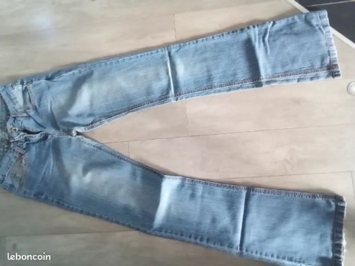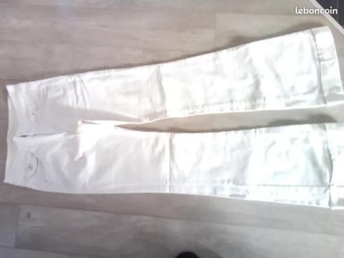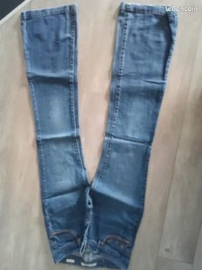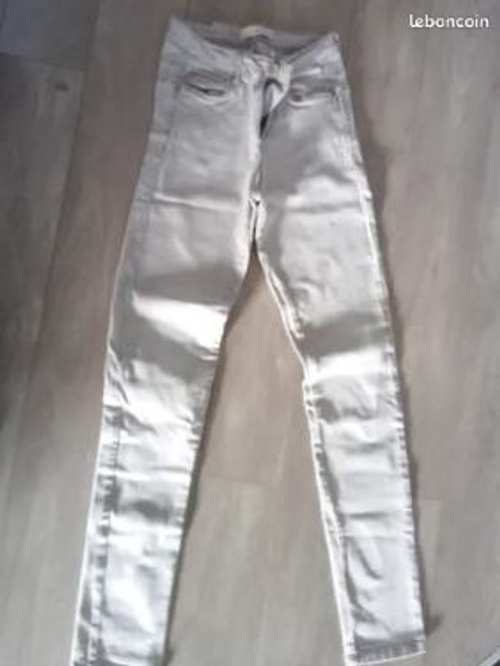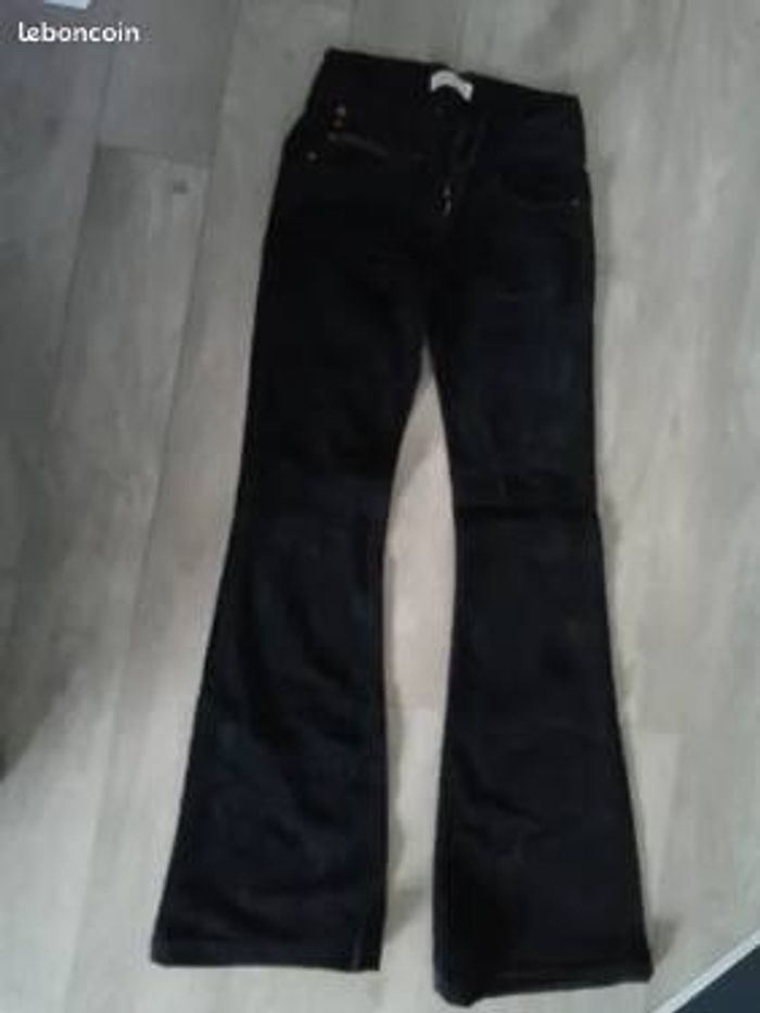 Pantalons taille 34-36 2 jeans bleus ''pattes d'ef.'' 1 pantalon noir velours 1 pantalon noir de costar 1 jeans blanc ''pattes d'ef.'' 1 jeans gris clair 5€ l'unité, 25€ les 6