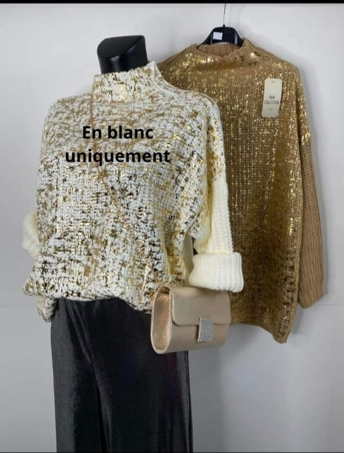 ✨ Pull avec éclats feuille d’or ✨ Neuf étiquetté TU 44/50 100% acrylique