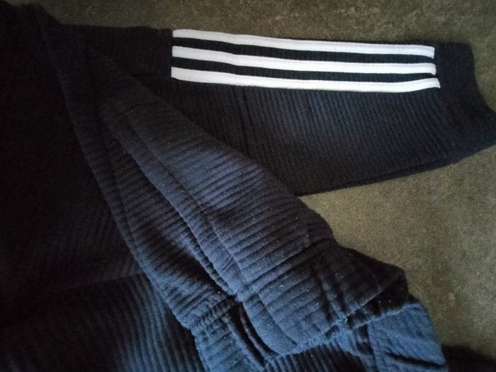 Bas de jogging côtelé bleu marine intérieur bleu . adidas 11/12 ans. Taille élastiquée. En très bon état.