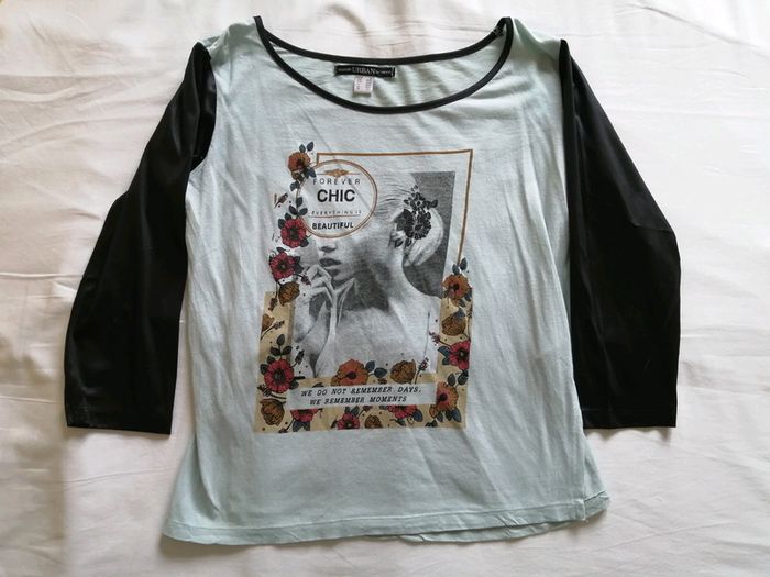 Vends T shirt manches 3/4. T shirt en coton et les manches en simili. Taille M #28flonat01femme