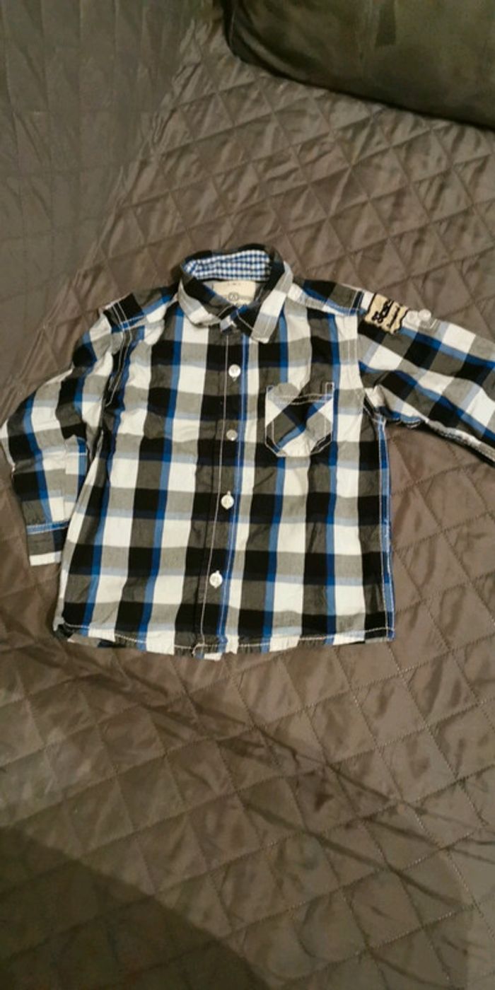 Ensemble chemise + pantalon Marque C&A Pantalon doublé qui se resserre a la taille par des élastiques. Très bon état Taille 2 ans