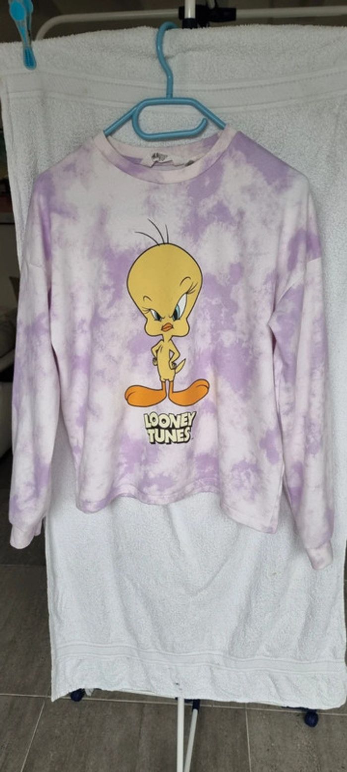 Pull Looney Tunes Titi, tie and dye violet et blanc, message Looney Tunes, motif Titi, col rond, manches longues. Taille 12/14 ans Excellent état A retirer sur Vannes et alentours ou envoi rapide et soigné. Prix 4 € D'autres accessoires, jouets et vêtements disponibles et autres tailles, dans le dressing. N'hésitez pas à me demander ☺️ #angita56_looneytunes #angita56_douzemoisgarcon #angita56_quatorzeansfille