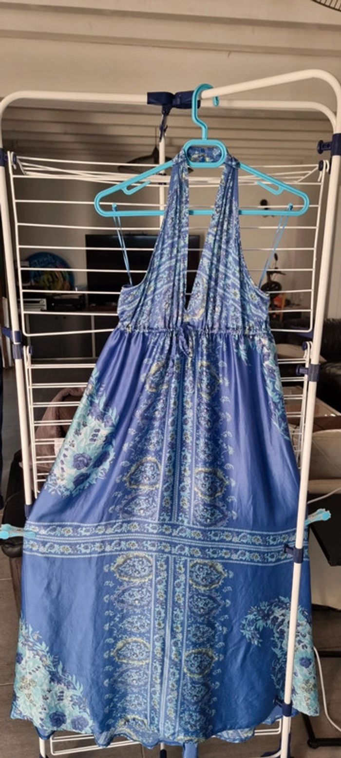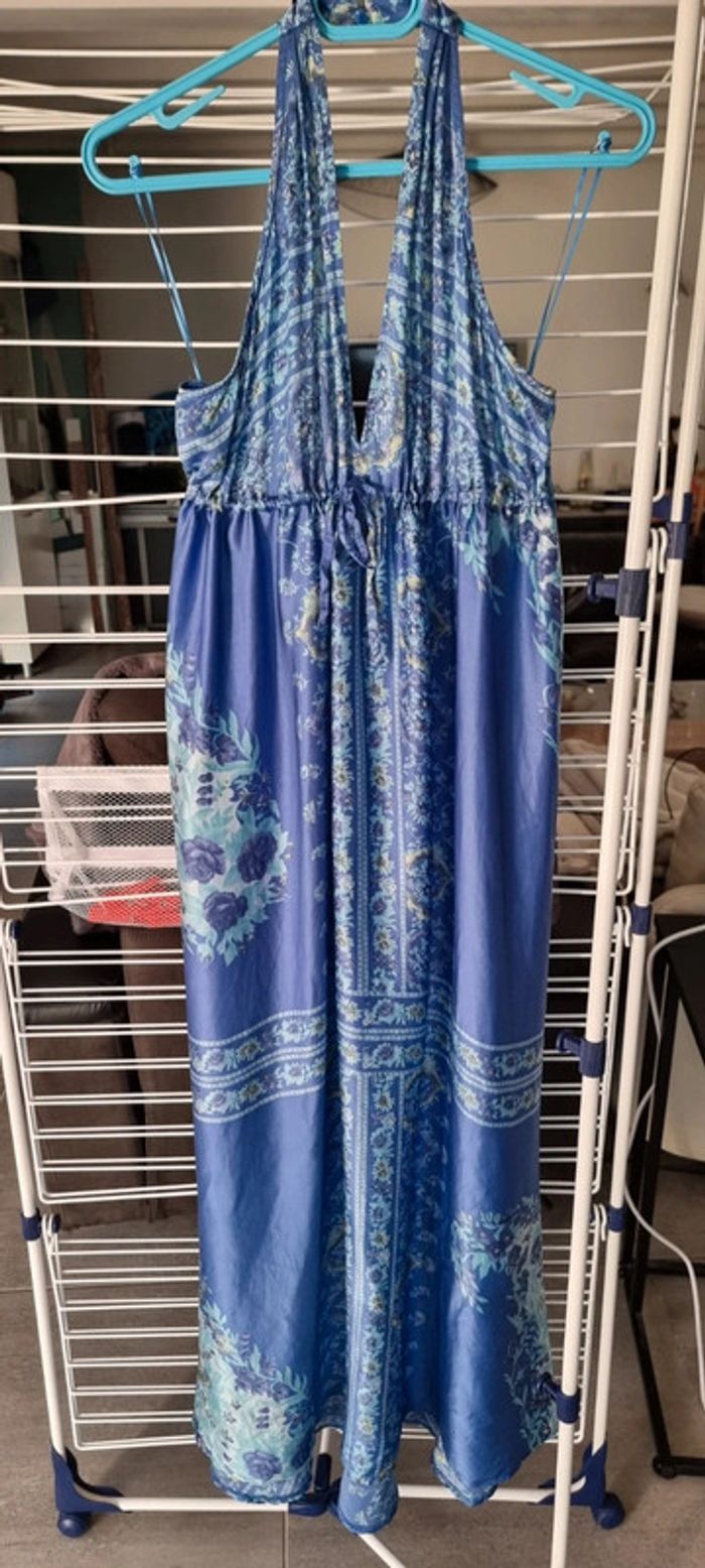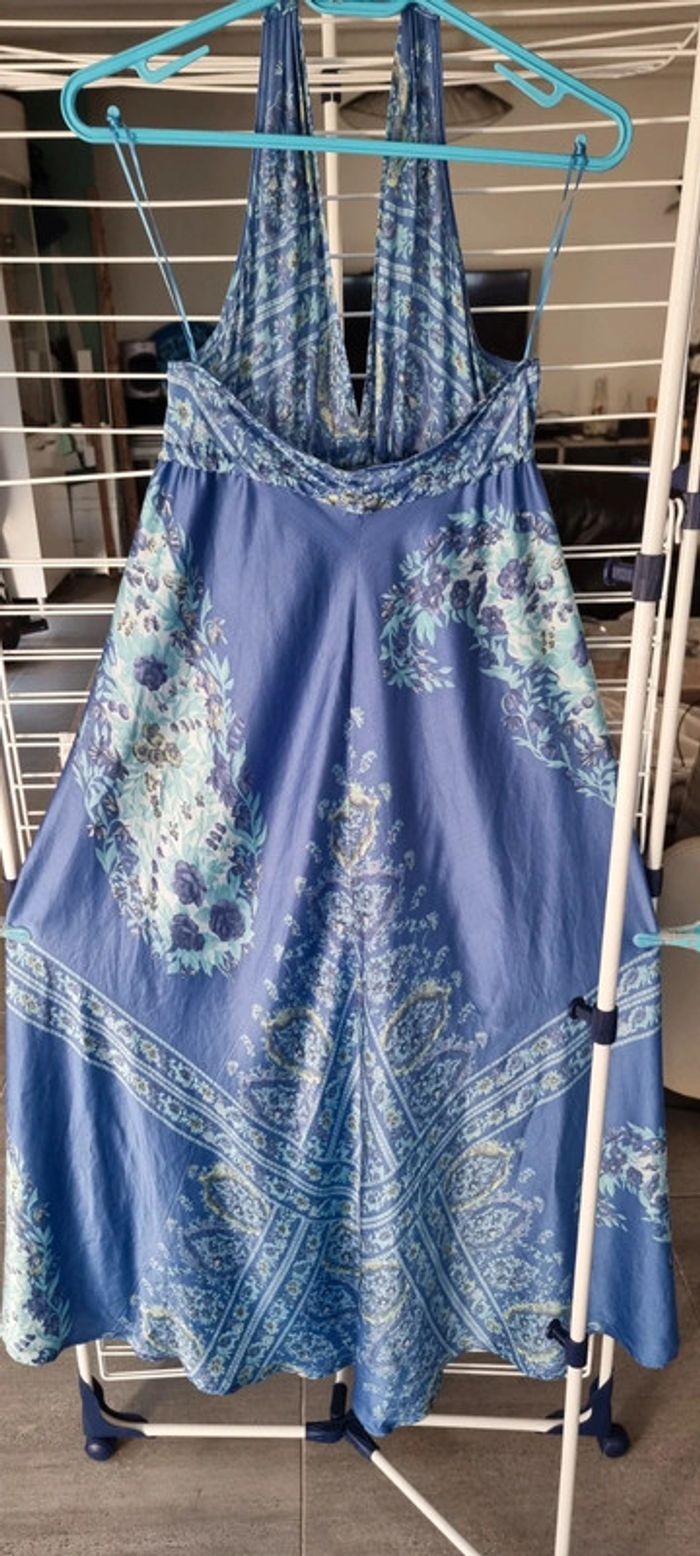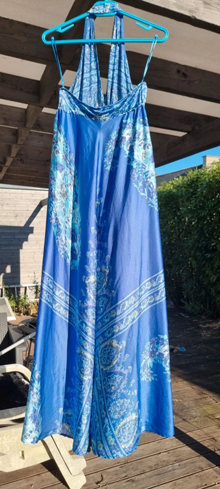 Sublime robe bleue à fleurs en soie et dos nu exquis avec boutonnière au cou pour la fermer. La robe est 100% en soie et elle est très légère, fluide et douce au toucher. Sublime à porter. N'hésitez pas à regarder le dressing qui est classé par catégories et à me demander tout n'est pas en ligne. Vous pouvez aussi vous abonner je publie régulièrement des nouveautés 😀 Robe bleue en soie Sinéquanone, taille 40, achetée à une autre vintie pour ma fille mais ne lui convient pas. Remise en main propre possible sur Vannes et alentours ou envoi rapide et soigné. Prix 50 euros #angita56_quarantefemme #angita56_ete #angita56_robesfemme