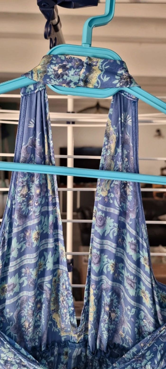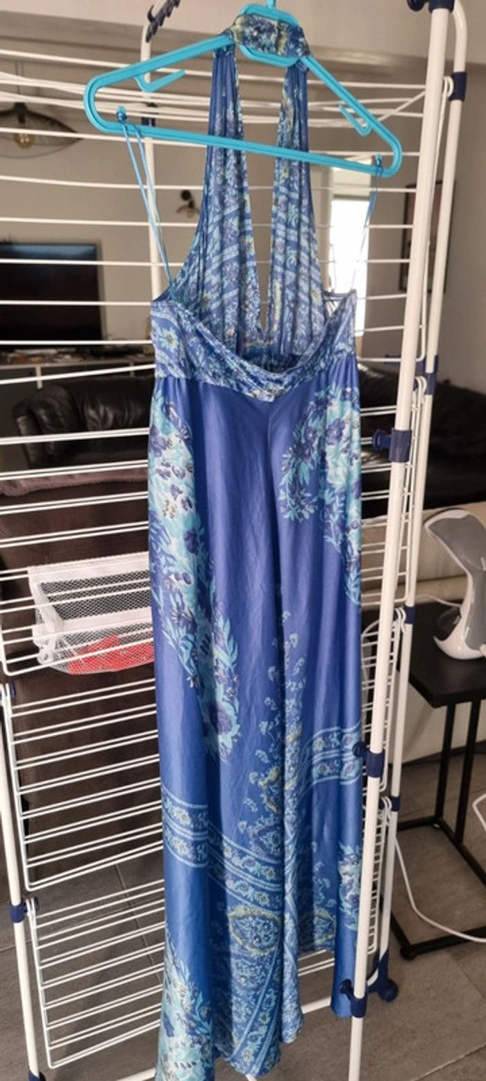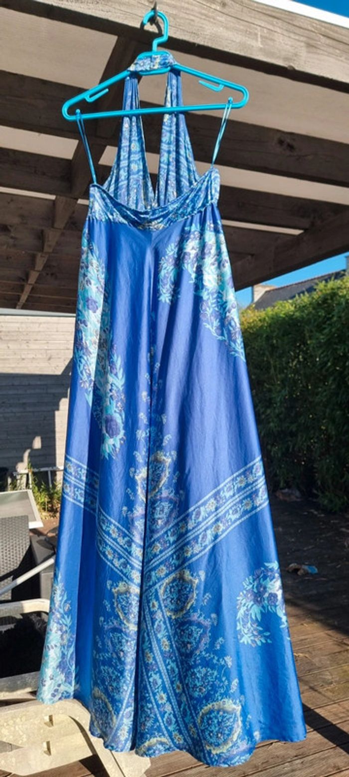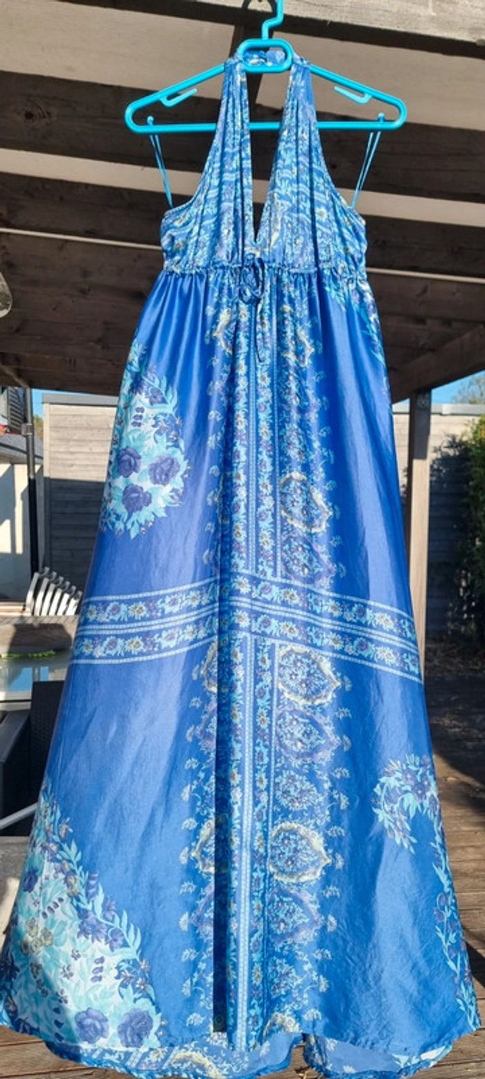 Sublime robe bleue à fleurs en soie et dos nu exquis avec boutonnière au cou pour la fermer. La robe est 100% en soie et elle est très légère, fluide et douce au toucher. Sublime à porter. N'hésitez pas à regarder le dressing qui est classé par catégories et à me demander tout n'est pas en ligne. Vous pouvez aussi vous abonner je publie régulièrement des nouveautés 😀 Robe bleue en soie Sinéquanone, taille 40, achetée à une autre vintie pour ma fille mais ne lui convient pas. Remise en main propre possible sur Vannes et alentours ou envoi rapide et soigné. Prix 50 euros #angita56_quarantefemme #angita56_ete #angita56_robesfemme