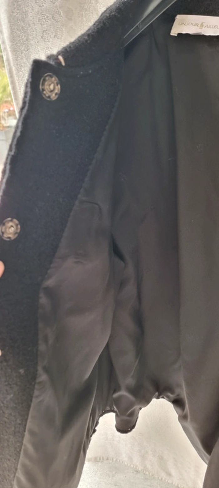 Très jolie veste pour femme en laine bouclette et doublée de satin noir. Fermeture par pressions invisibles et ourlets blancs. Veste femme, taille 4, Un Jour Ailleurs. Excellent état. A retirer sur Vannes et alentours ou envoi rapide et soigné. Prix 25 € D'autres accessoires, jouets et vêtements disponibles et autres tailles, dans le dressing. N'hésitez pas à me demander ☺️ #angita56_femme #angita56_quarantedeuxfemme #angita56_manteauxfemme #angita56_unjourailleurs