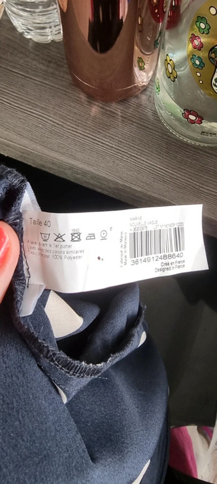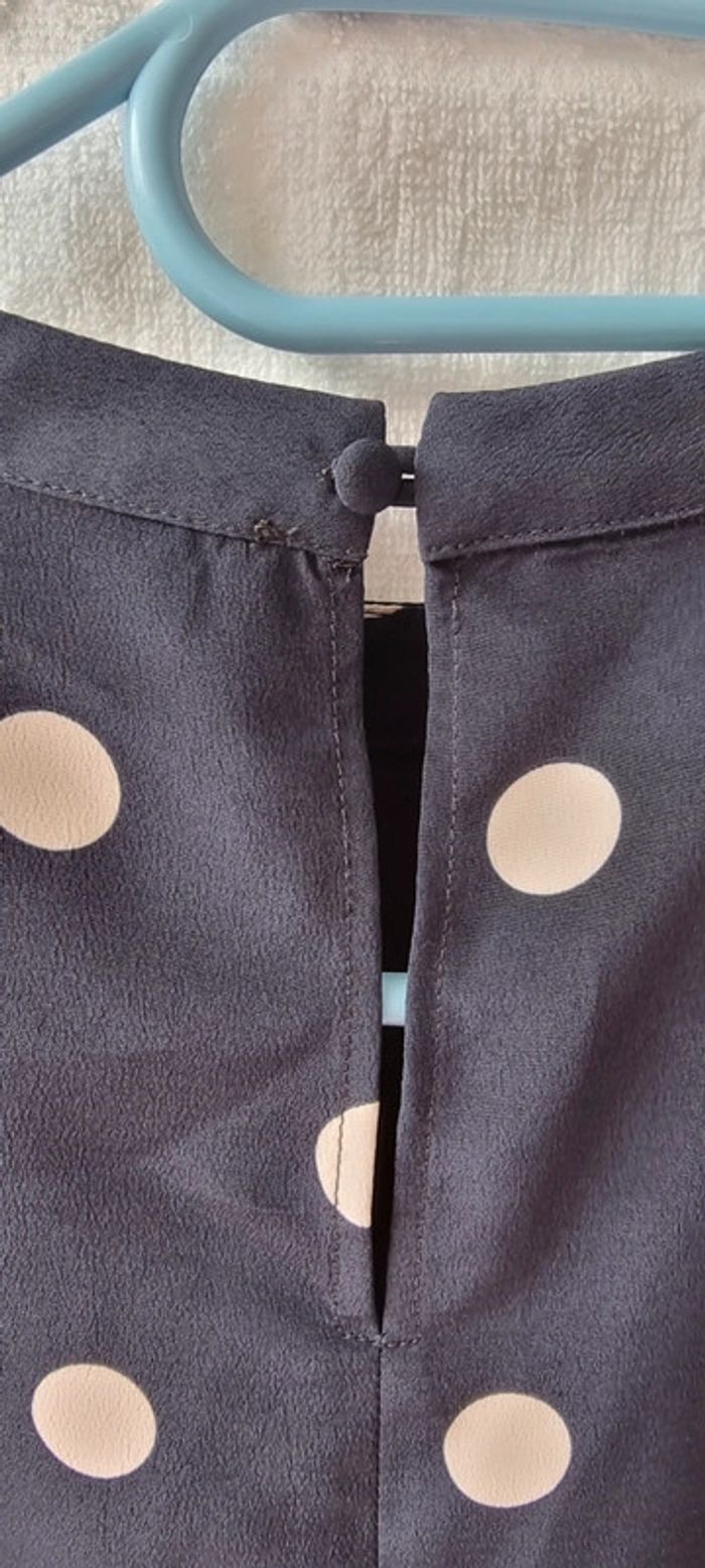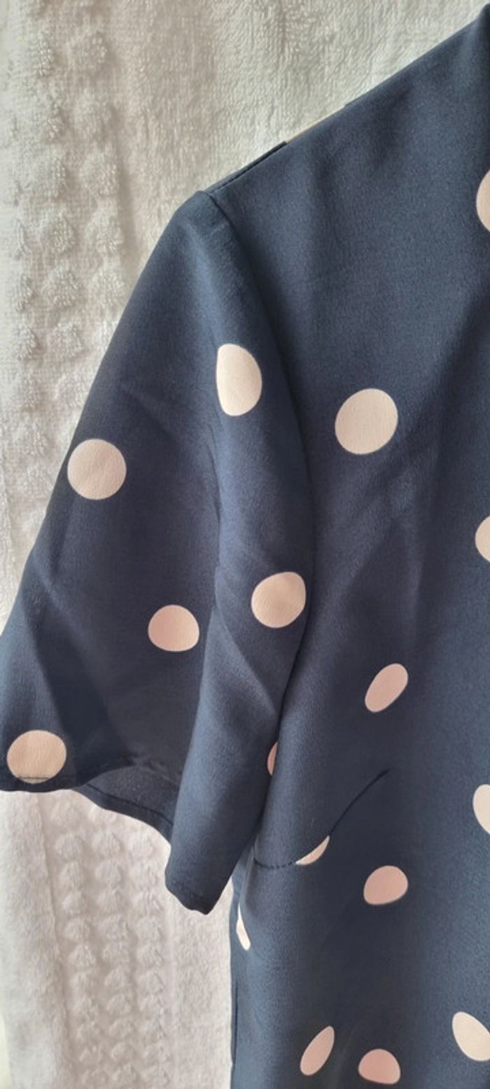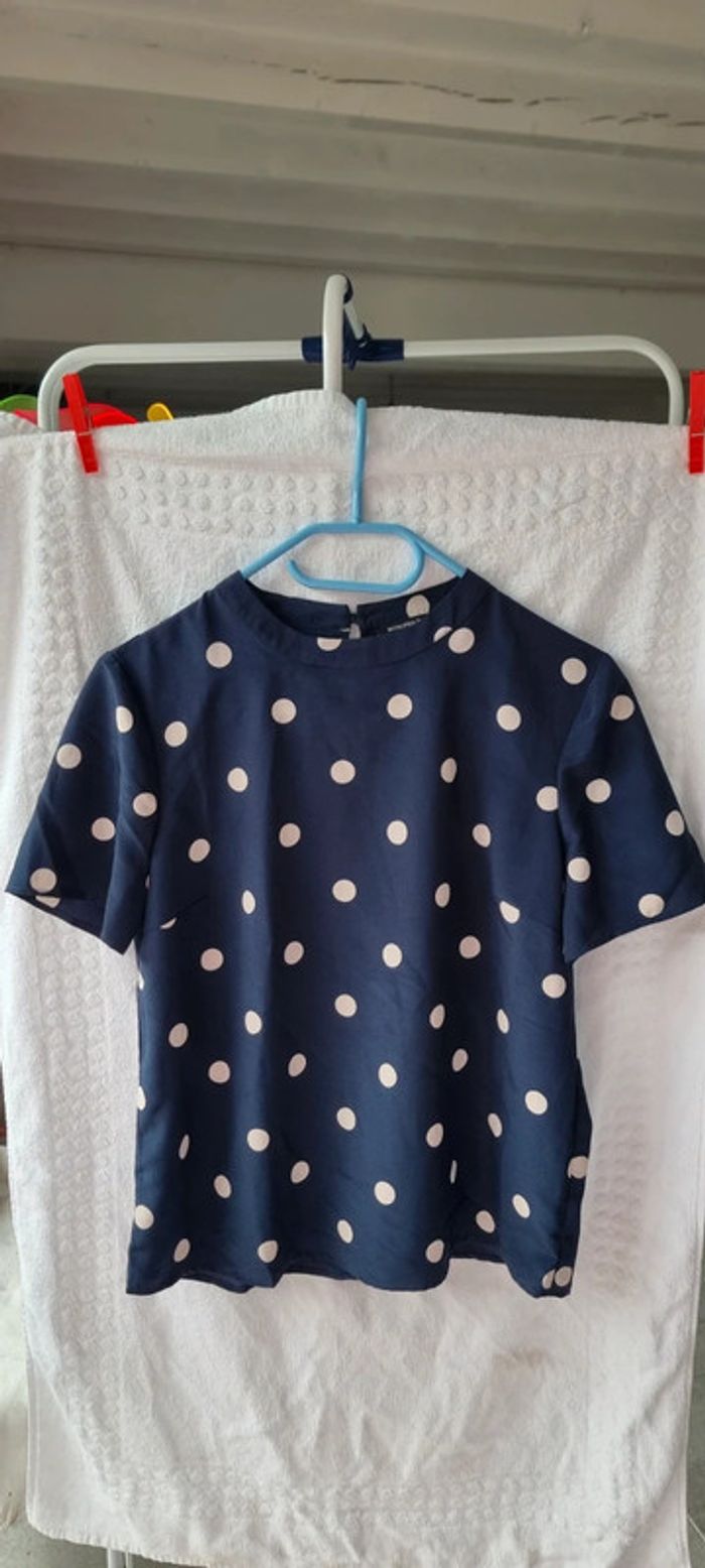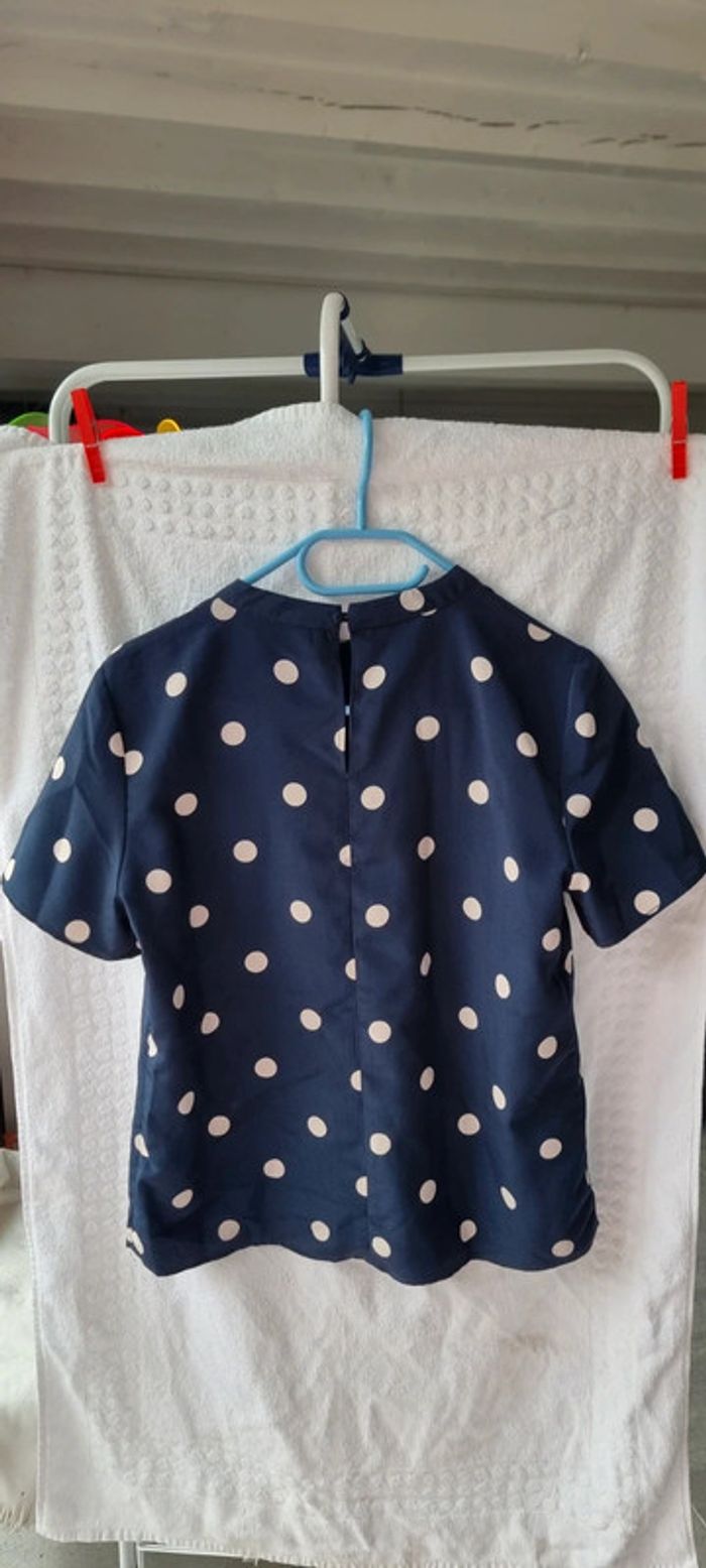 Ravissante blouse bleue marine à gros pois blancs avec des manches courtes. Elle se ferme dans le dos par une boutonnière. Le tout est très chic. D'autres accessoires, jouets et vêtements disponibles et autres tailles, dans le dressing. N'hésitez pas à me demander ☺️ A retirer sur Vannes et alentours ou envoi rapide et soigné. Blouse neuve Monoprix juste lavée 1 fois, taille 40. Prix 18 € #angita56_ete #angita56_quarantefemme