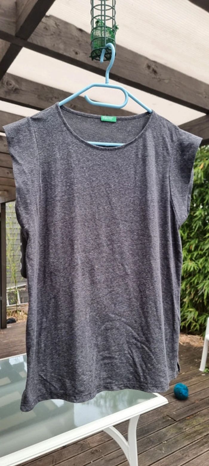 Tee-shirt gris chiné col rond Benetton, avec petites manches. D'autres accessoires, jouets et vêtements disponibles et autres tailles, dans le dressing. N'hésitez pas à me demander ☺️ A retirer sur Vannes et alentours ou envoi rapide et soigné. Tee-shirt en excellent état, taille 42 , Benetton. Prix 3 € #angita56_ete #angita56_quarantedeuxfemme