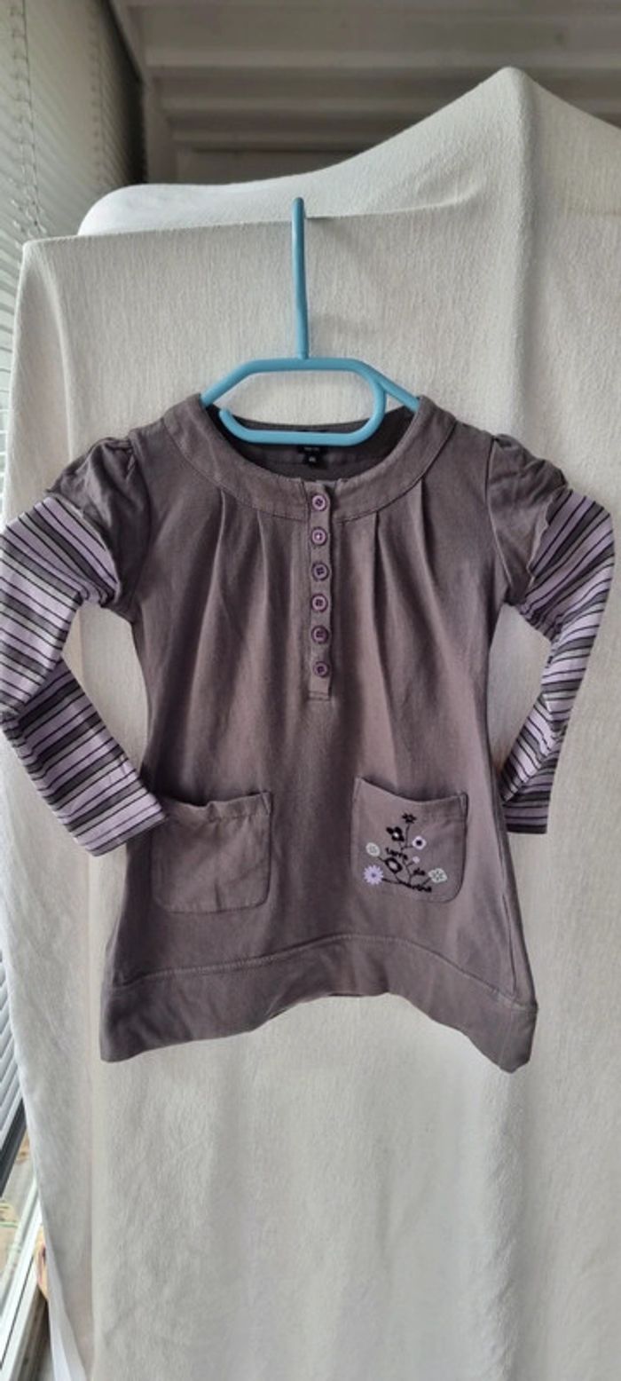 Ravissante robe grise à manches longues. Les manches sont rayées grises et violettes. Se ferme par une série de jolis boutons violets devant. Elle est dotée de 2 poches, l'une d'elle est brodée. Excellent état, Terre de Marins taille 4 ans D'autres vêtements disponibles et autres tailles, dans le dressing. N'hésitez pas à me demander ☺️ A retirer sur Vannes et alentours ou envoi rapide et soigné. Prix 3,50 € #angita56_quatreansfille #angita56_terredemarins