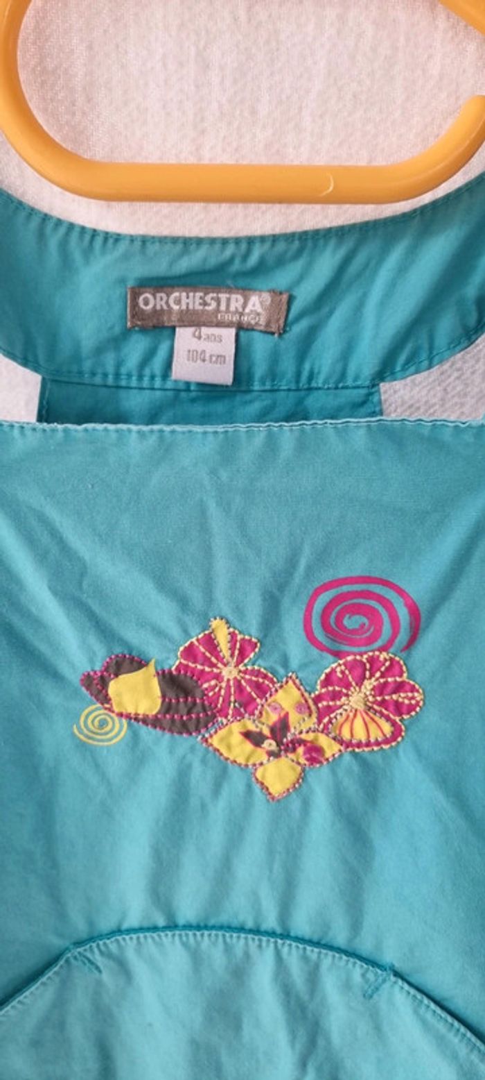 Ravissante robe salopette turquoise en tissu Orchestra sans manches Elle se ferme par des pressions sur le côté. Robe idéale pour le printemps ou l'été. Elle est dotée d'une ceinture avec passants, ton sur ton. Broderies devant. Excellent état, Orchestra taille 4 ans. D'autres vêtements disponibles et autres tailles, dans le dressing. N'hésitez pas à me demander ☺️ A retirer sur Vannes et alentours ou envoi rapide et soigné. Prix 3 € #angita56_quatreansfille #angita56_orchestra #angita56_ete