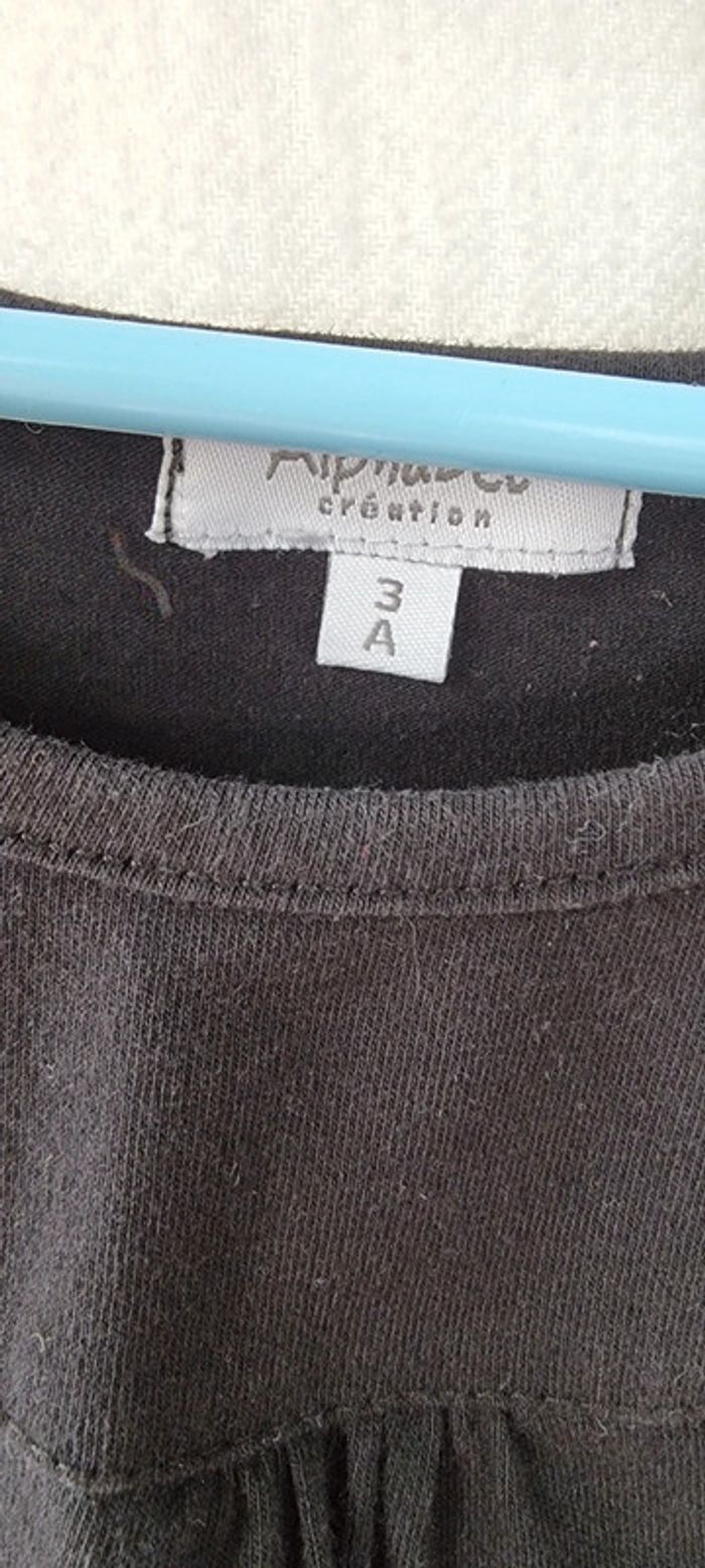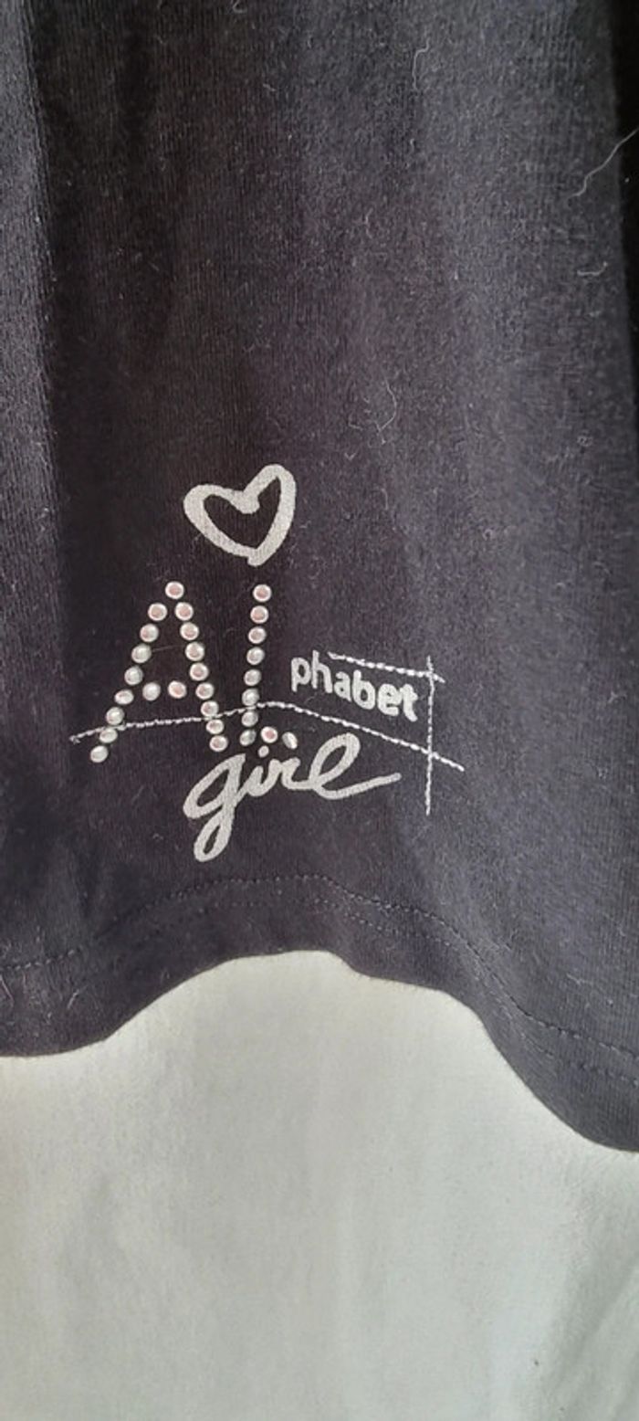 Tee-shirt noir Alphabet, petits strass dans le bas manches 3/4. Il s'enfile par le haut et le bout des manches est élastique. Idéal pour le printemps ou l'été. Excellent état, Alphabet taille 3 ans, collection Alphabet girl. D'autres vêtements disponibles et autres tailles, dans le dressing. N'hésitez pas à me demander ☺️ A retirer sur Vannes et alentours ou envoi rapide et soigné. Prix 2 € #angita56_trentesixmoisfille #angita56_troisansfille #angita56_alphabet