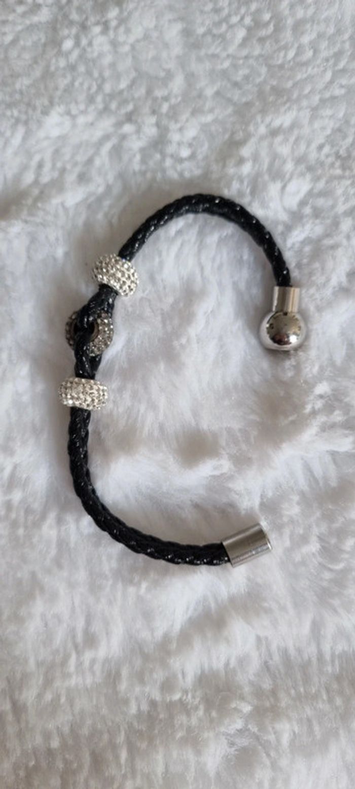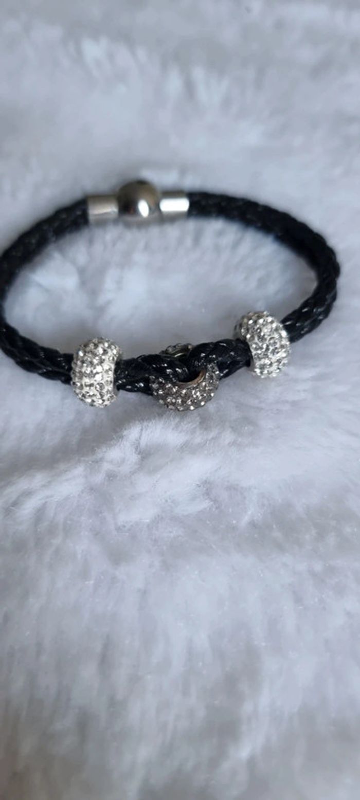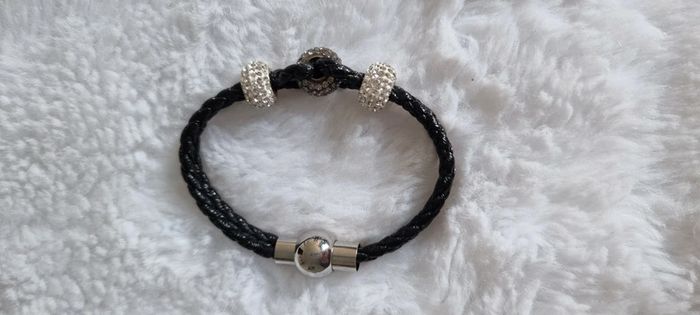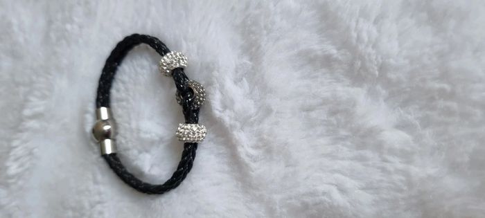 Bracelet en cuir noir équipé d'une fermeture en acier aimantée. Il est serti d'Oxydes de Zirconium blancs.Faites vous plaisir à petit prix avec un bijou d'une élégance rare! Neuf D'autres vêtements disponibles et autres tailles, dans le dressing. N'hésitez pas à me demander ☺️ A retirer sur Vannes et alentours ou envoi rapide et soigné. Prix 10 € #angita56_femme #angita56_bijoux