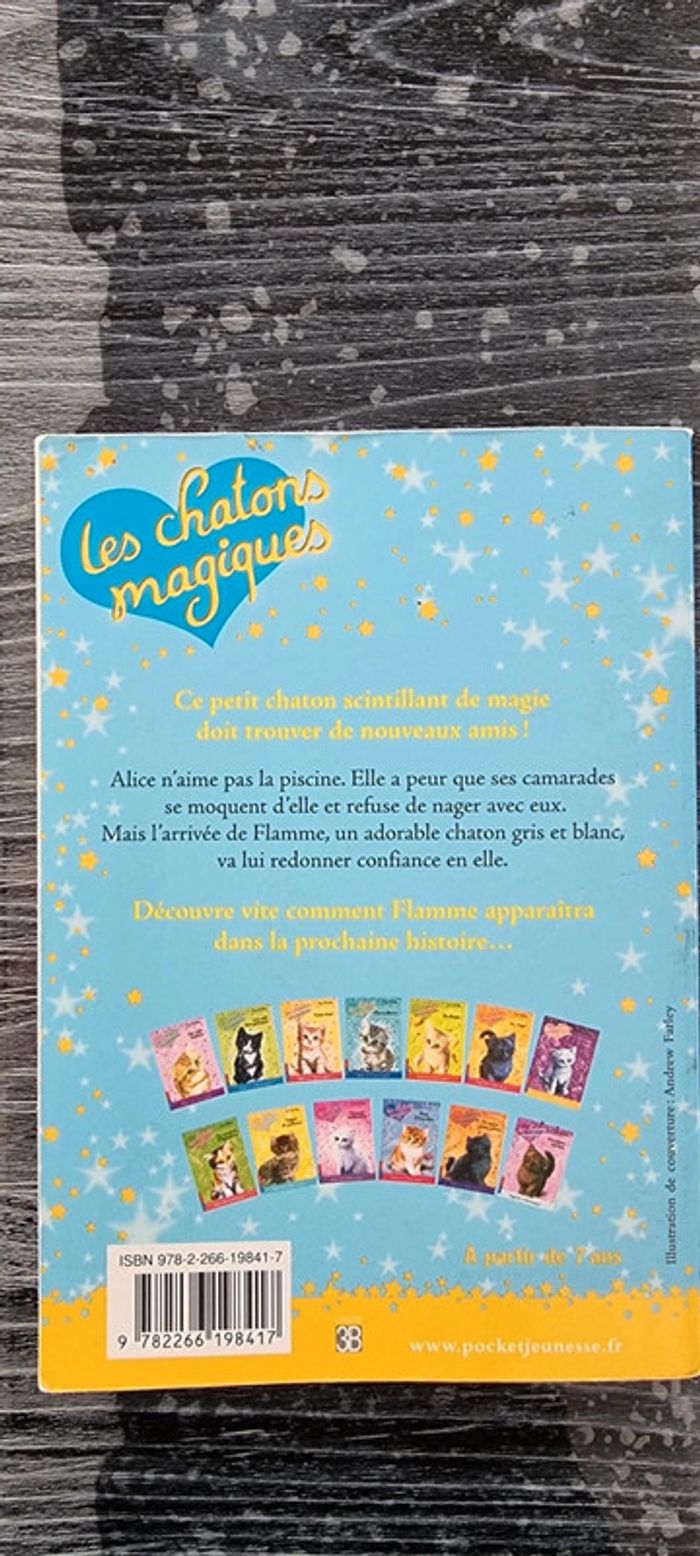 Ce petit chaton scintillant de magie doit trouver de nouveaux amis ! Alice n'aime pas la piscine. Elle a peur que ses camarades se moquent d'elle et refuse de nager avec eux. Mais l'arrivée de Flamme, un adorable chaton gris et blanc, va lui redonner confiance en elle. Remise en main propre possible sur Vannes et alentours ou envoi rapide et soigné. Prix 1 € #angita56_livres #angita56_jeuxjouets