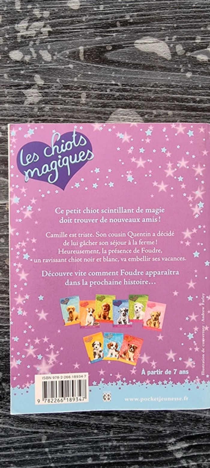 Les chiots magiques arrivent ! Foudre est perdu au royaume des hommes. Camille est triste. Son cousin Quentin a décidé de lui gâcher son séjour à la ferme ! Heureusement, la présence de Foudre, un ravissant chiot noir et blanc, va embellir ses vacances. Remise en main propre possible sur Vannes et alentours ou envoi rapide et soigné. Prix 1 € #angita56_livres #angita56_jeuxjouets