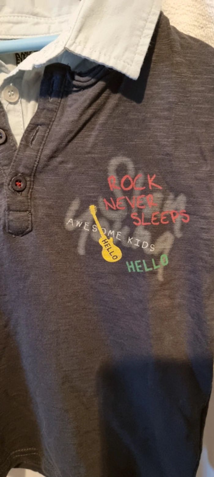 Superbe tee-shirt polo à manches longues et double col à série de boutons gris. Dessin sur la poitrine et le polo. Excellent état, tape à l'œil taille 4 ans D'autres vêtements disponibles et autres tailles, dans le dressing. N'hésitez pas à me demander ☺️ A retirer sur Vannes et alentours ou envoi rapide et soigné. Prix 3 € #angita56_quatreansgarcon #angita56_tao