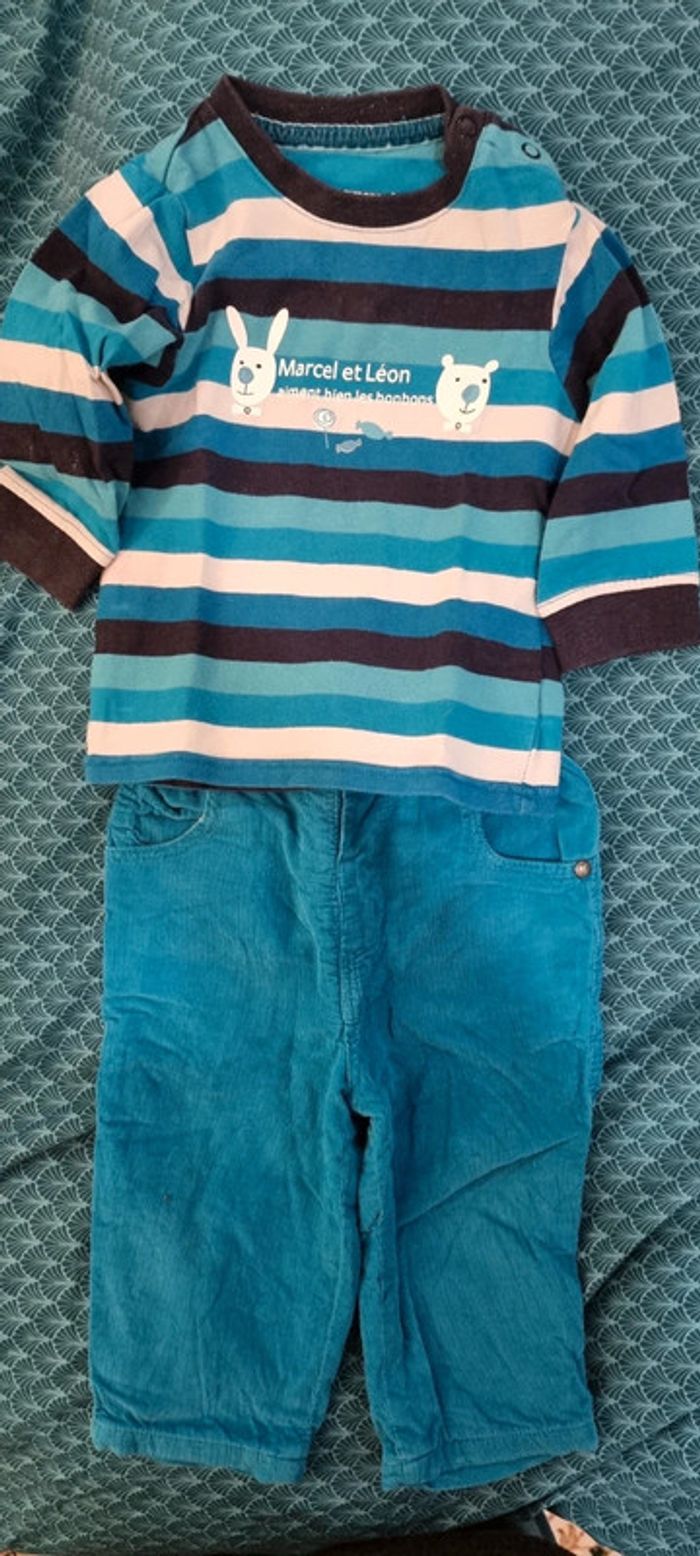 Super ensemble de 2 pièces Orchestra baby boy. Il se compose d'1 tee-shirt à manches longues bleu à rayures et d'un pantalon en velours bleu doublé avec des poches devant et derrière. Il se ferme par 1 pression et la taille est élastique. Le haut se ferme par pressions sur l'épaule. L'ensemble est ideal pour la saison. Excellent état, Orchestra taille 12 mois. D'autres vêtements disponibles et autres tailles, dans le dressing. N'hésitez pas à me demander ☺️ A retirer sur Vannes et alentours ou envoi rapide et soigné. Prix 5 € #angita56_douzemoisgarcon #angita56_orchestra