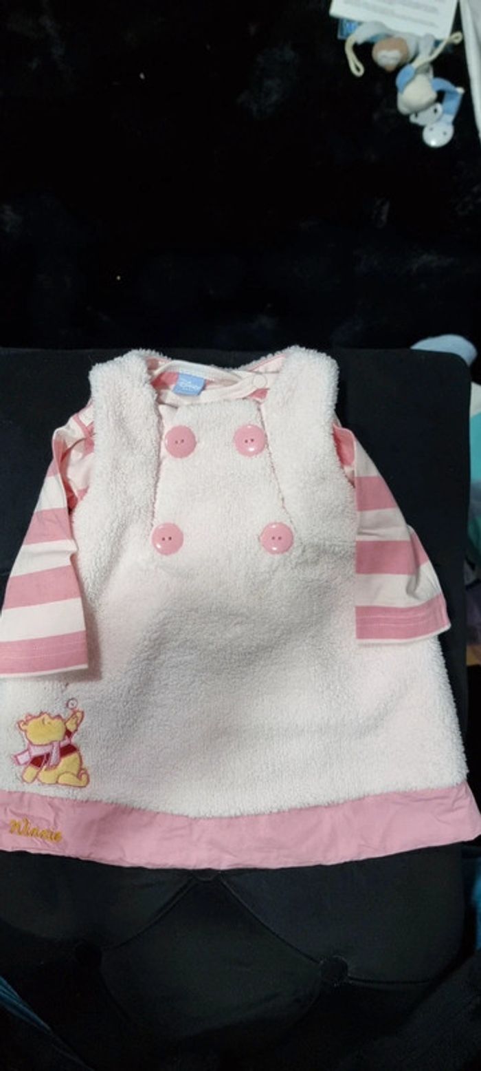 Ravissant ensemble 2 pièces Winnie pour bébé. Composé d'un tee-shirt rose qui se ferme par boutons aux épaules et d'une robe rose toute douce et chaude, munie de 4 boutons devant et qui se ferme par pressions dans le dos. L'ensemble est idéal pour la saison. Neuf jamais porté. D'autres vêtements disponibles et autres tailles, dans le dressing. N'hésitez pas à me demander ☺️ A retirer sur Vannes et alentours ou envoi rapide et soigné. Taille 6 mois. Prix 5 € #angita56_sixmoisfille #angita56_hiver #angita56_disney